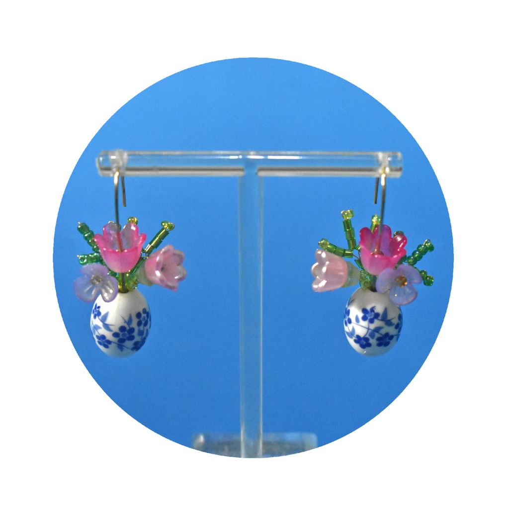Material: Porcelain Bead, Acrylic Bead, 18K Plated Brass Hooks
