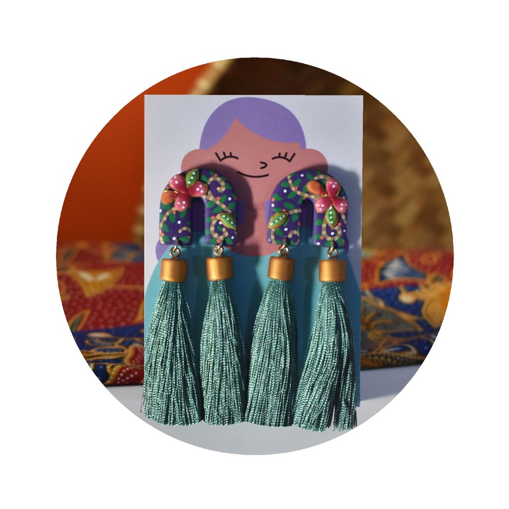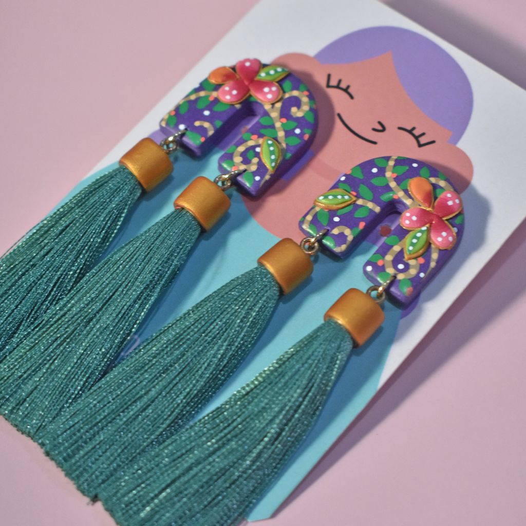 Material: Polymer Clay,18k Plated Backing, Silk Polyester Tassel